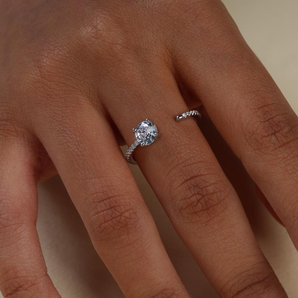 خاتم من الفضة عيار 925 ومطلي بالروديوم ، ومزين بأحجار الزركون بتقنية ترصيع مشابه للألماس