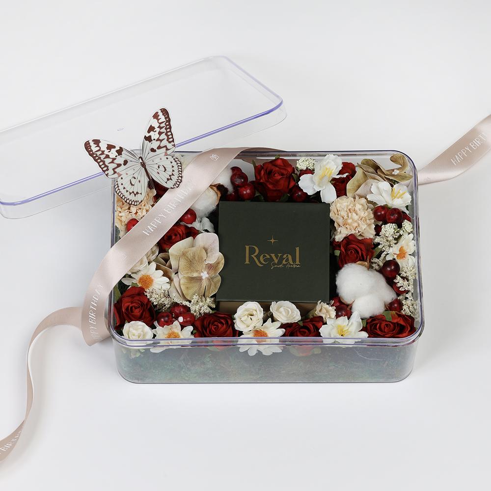 • يتم تنسيقها بألوان الورد المختاره من خيارات المنتج.